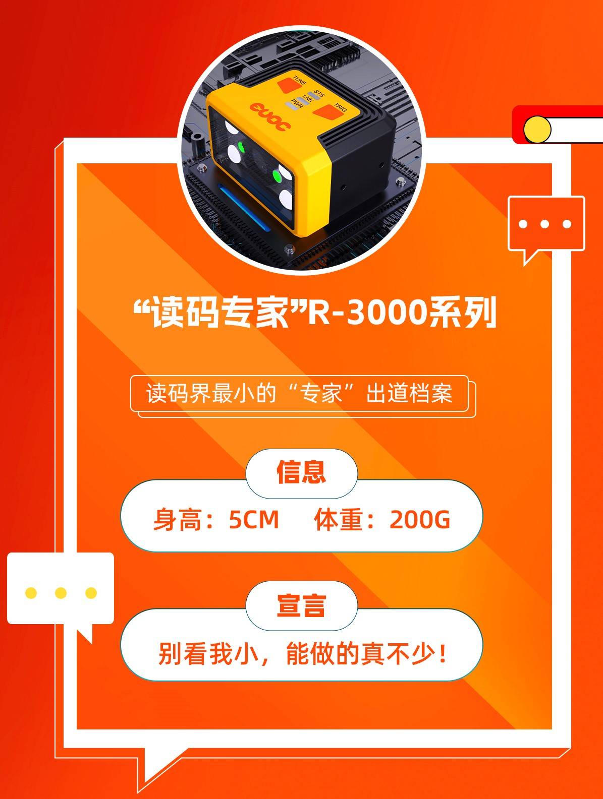 zoty中欧“读码专家”R-3000系列,小巧的机身能实现快速安装,傻瓜式调试一步到位,已广泛应用于电动车行业、汽车行业、电子行业等领域。