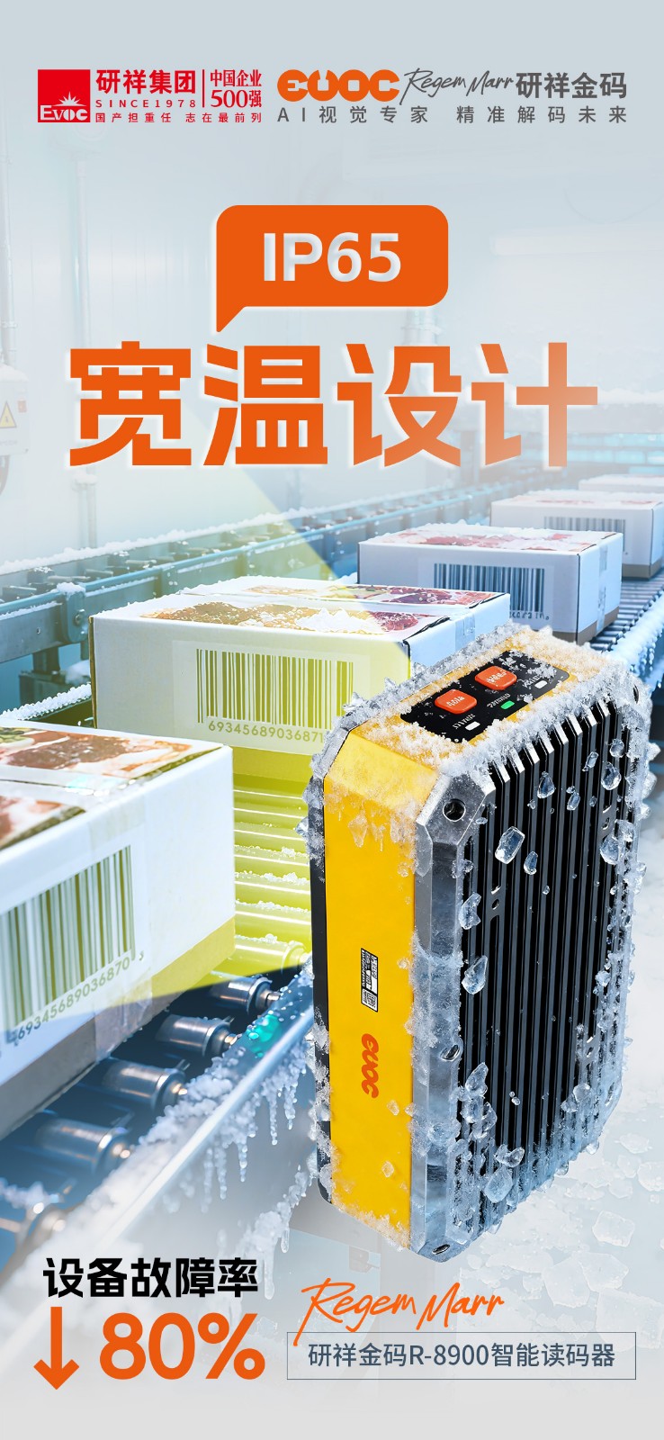 zoty中欧R-8900智能读码器具备IP65防护等级+宽温设计(-25℃~55℃),大大降低极端工况下的故障风险,产品平均无故障运行时间(MTBF)超4万小时。